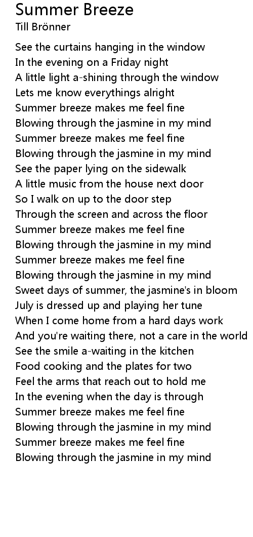 Summer breeze makes me feel fine |