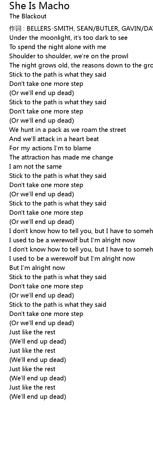 | 作词 : BELLERS-SMITH, SEAN/BUTLER, GAVIN/DAVIES, MATTHEW/DAVI | |