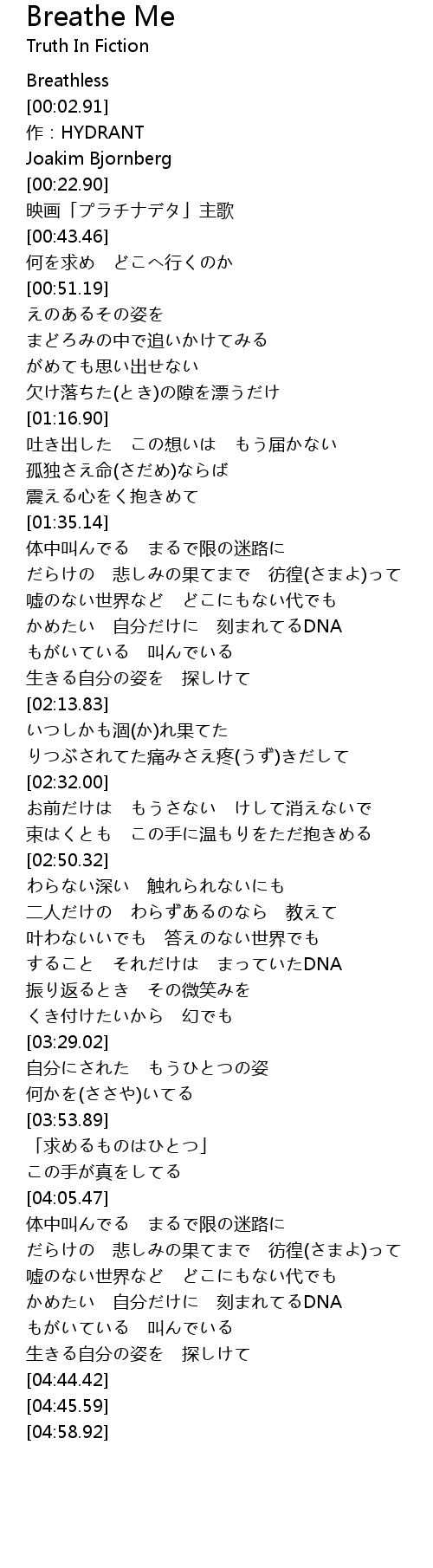 映画「プラチナデタ」主歌 |