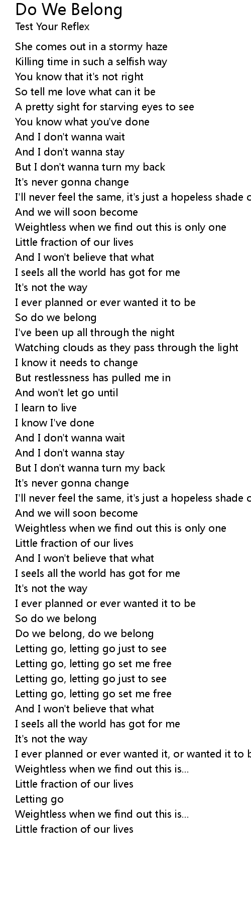 Do we belong, do we belong |