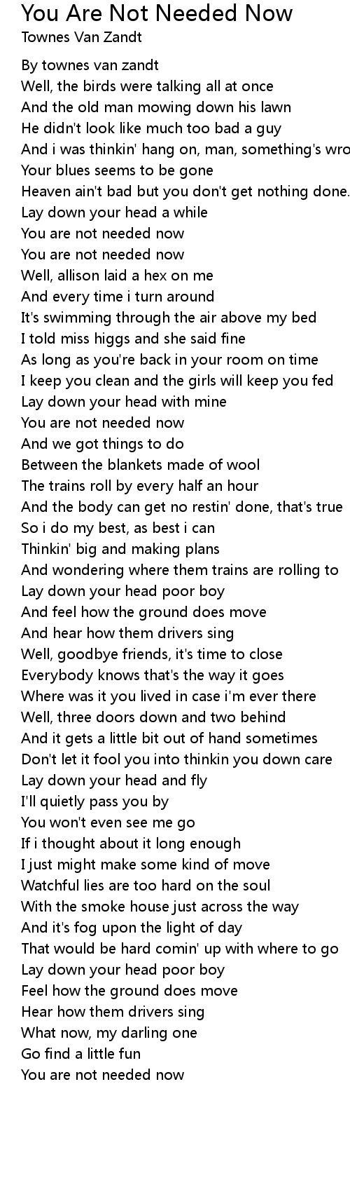 You are not needed now |