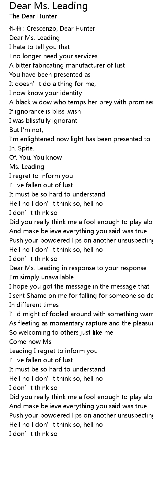 | Song | Dear Ms. Leading |