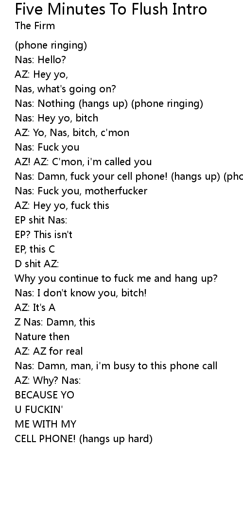 | Nas: Damn, fuck your cell phone! (hangs up) (phone ringing) | |