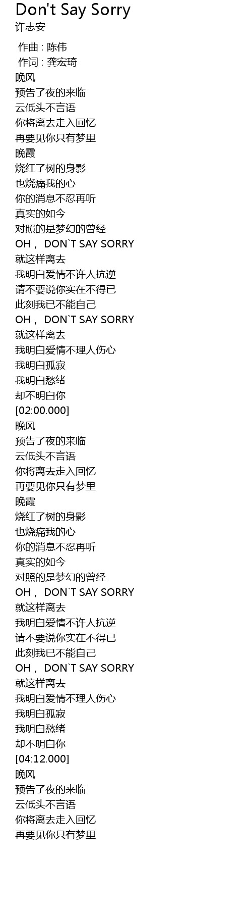 | [03:20.000] | OH, DON`T SAY SORRY |