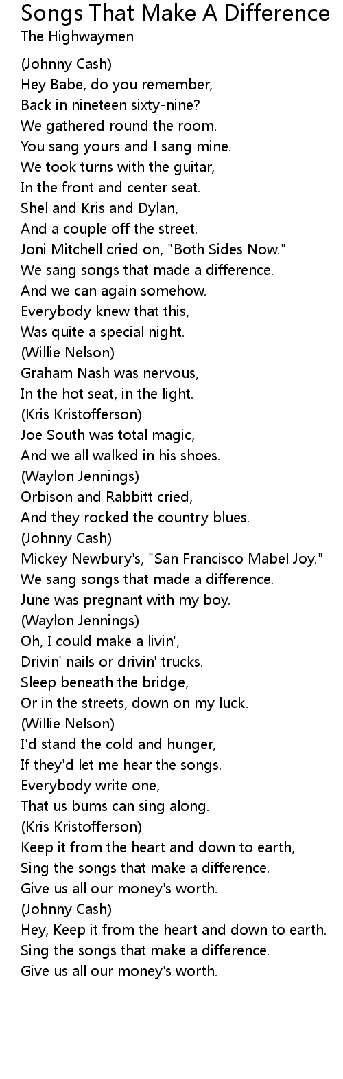 Sing the songs that make a difference. |