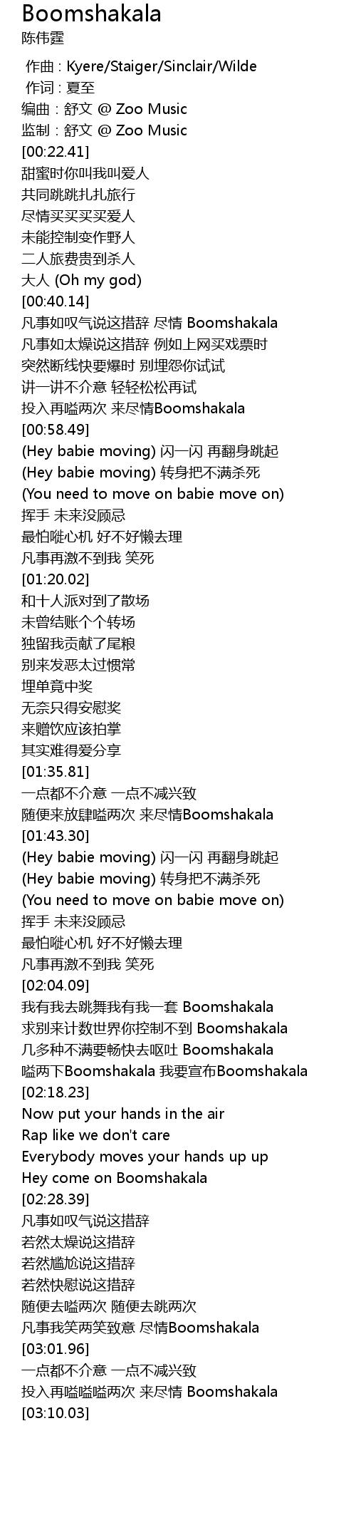 | [02:58.38] | 凡事我笑两笑致意 尽情Boomshakala |