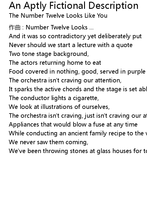 | Artist | The Number Twelve Looks Like You |