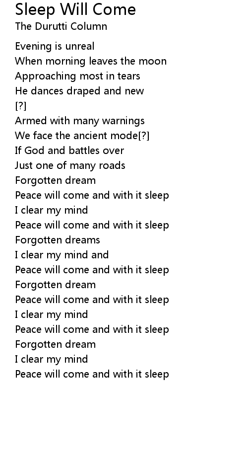 Peace will come and with it sleep |
