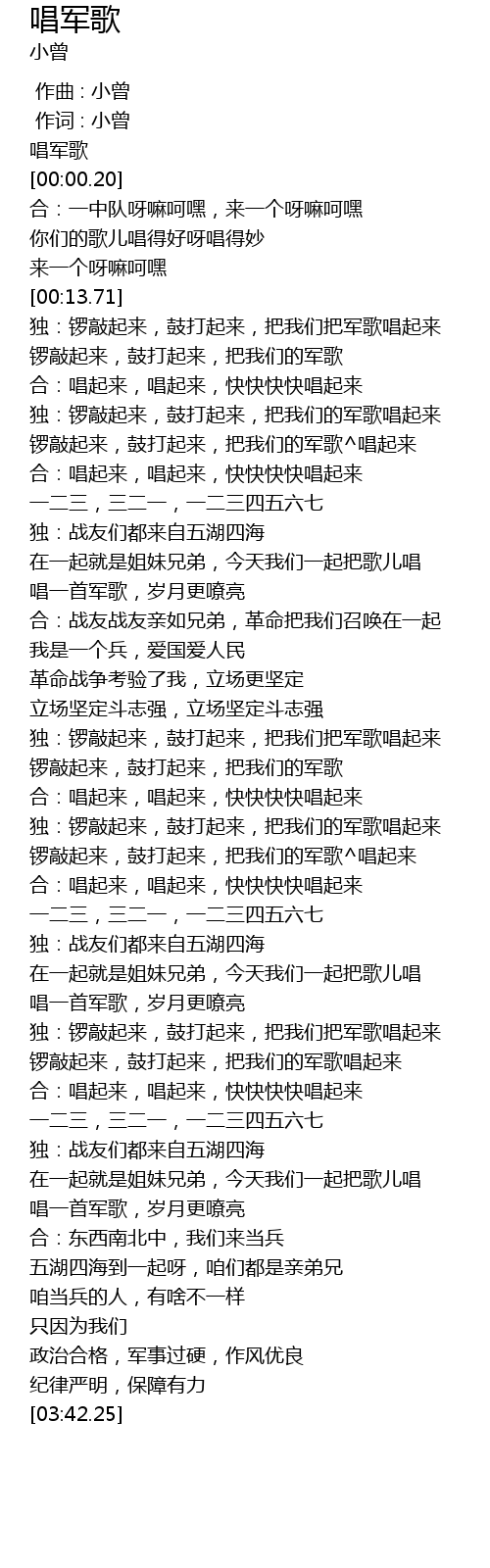 | [00:00.01] | 唱军歌 |