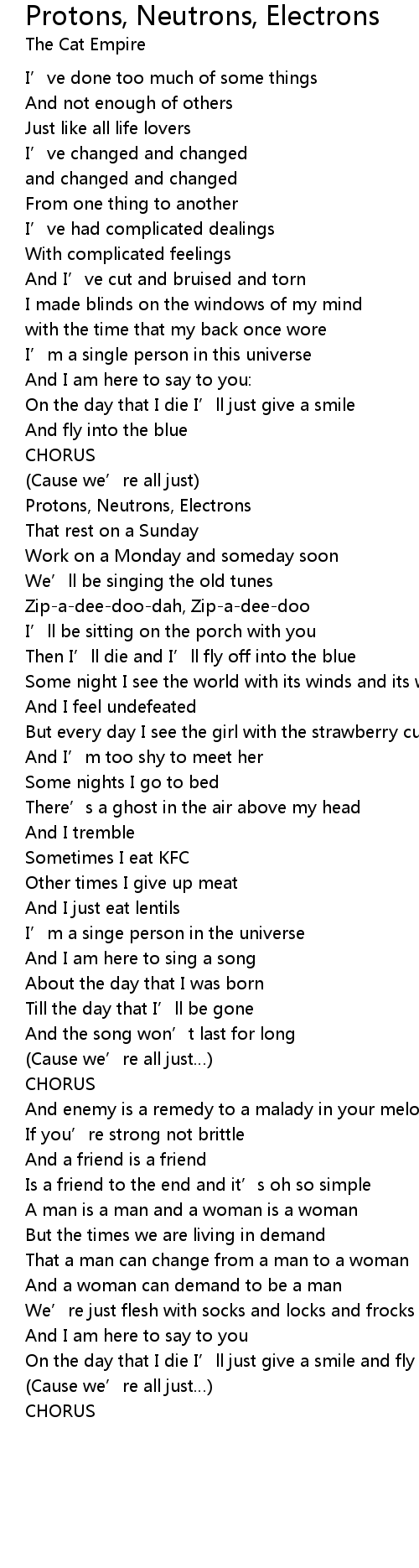 | Song | Protons, Neutrons, Electrons |
