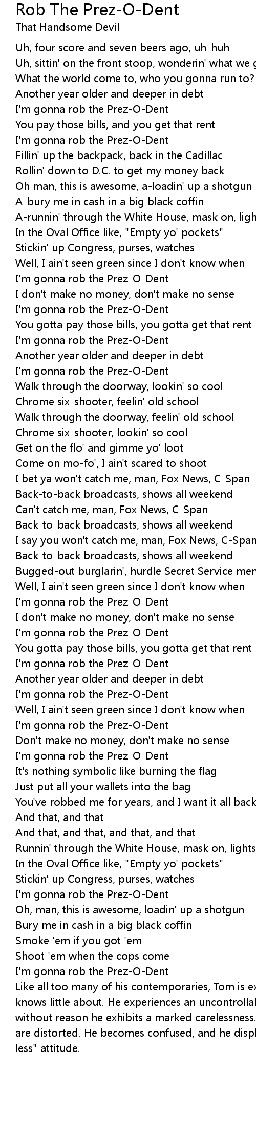 I'm gonna rob the Prez-O-Dent |