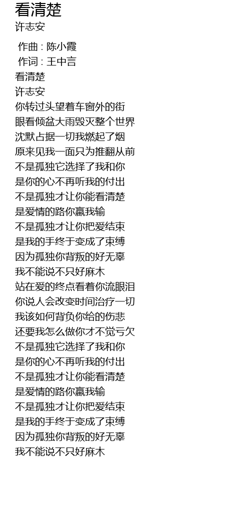 | [01:05.79] | bú shì gū dú cái ràng nǐ néng kàn qīng chǔ |