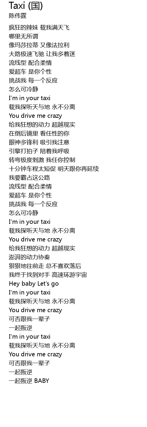 | [00:14.00] | 疯狂的辣妹 载我满天飞 |