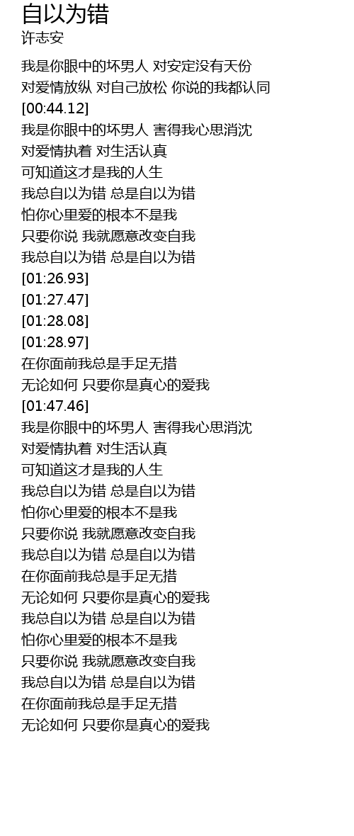 | [01:26.25] | 我总自以为错 总是自以为错 |