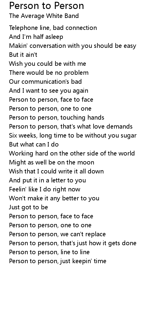 Person to person, line to line |