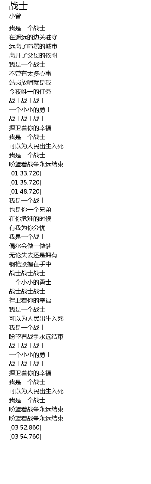 | [03:33.370] | 我是一个战士 |