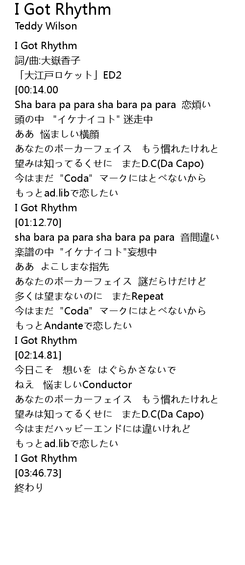 | [02:12.26] | I Got Rhythm |