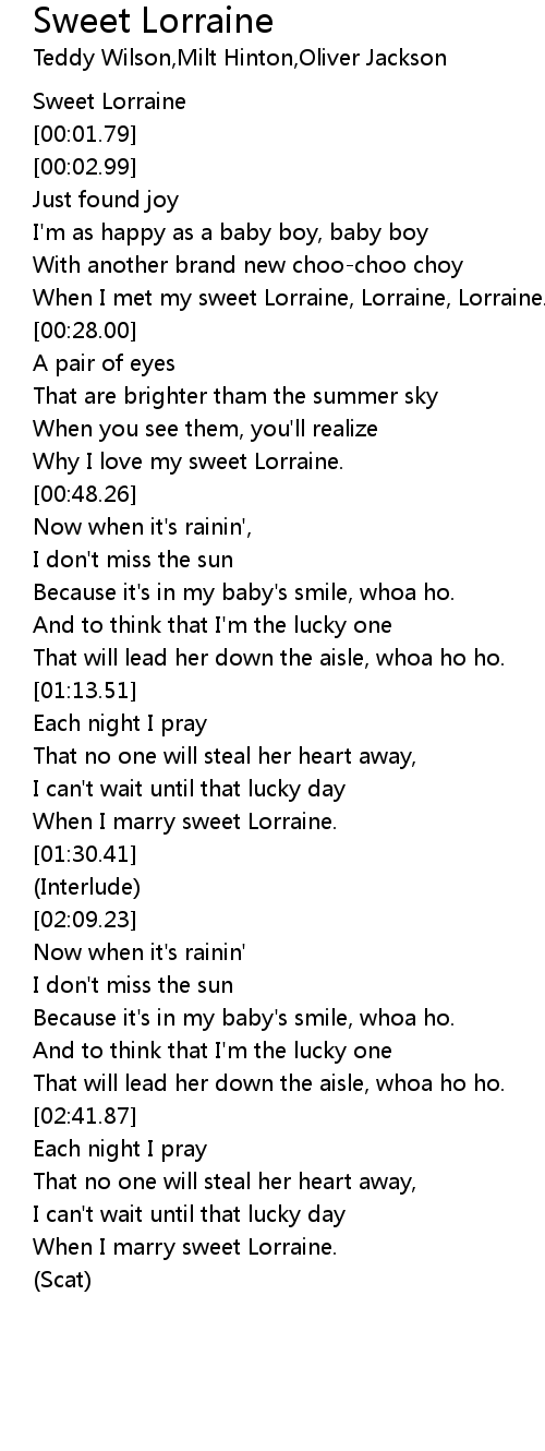 When I met my sweet Lorraine, Lorraine, Lorraine. |