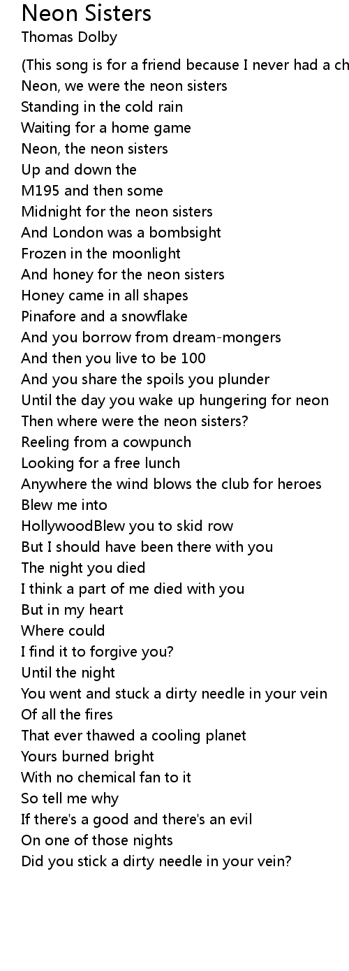 Neon, we were the neon sisters |