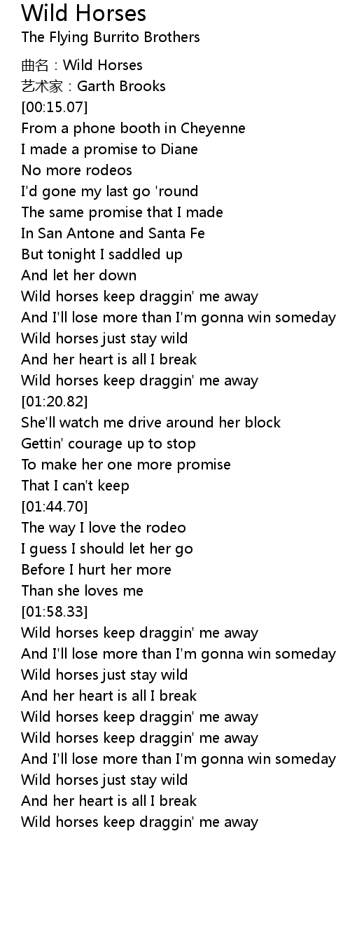 | [02:56.81] | Wild horses keep draggin' me away |