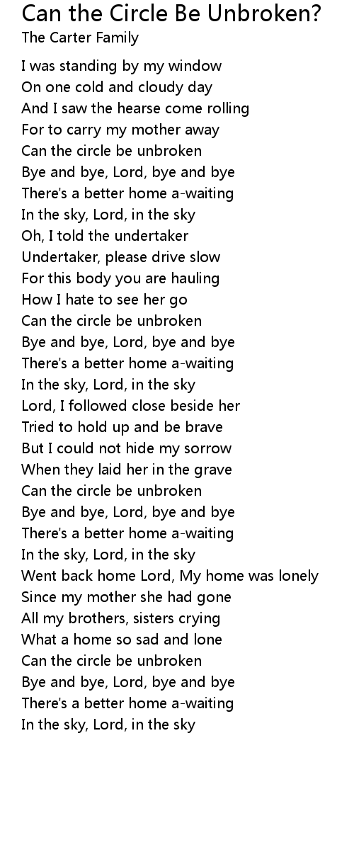Can the circle be unbroken |