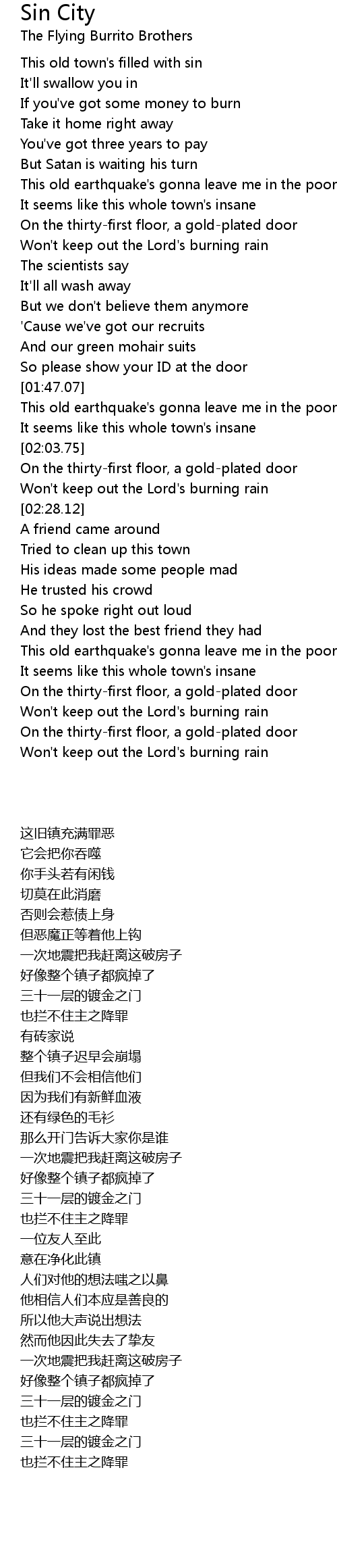 Sin City Lyrics