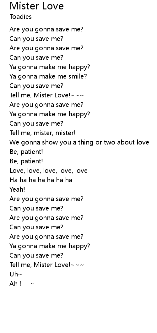 | [02:44.233] | Tell me, Mister Love! |