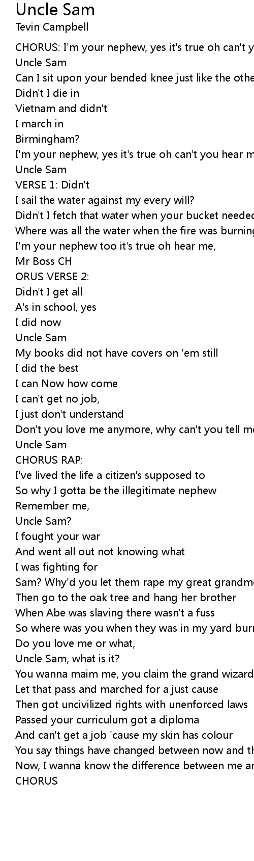 CHORUS: I'm your nephew, yes it's true oh can't you hear me |