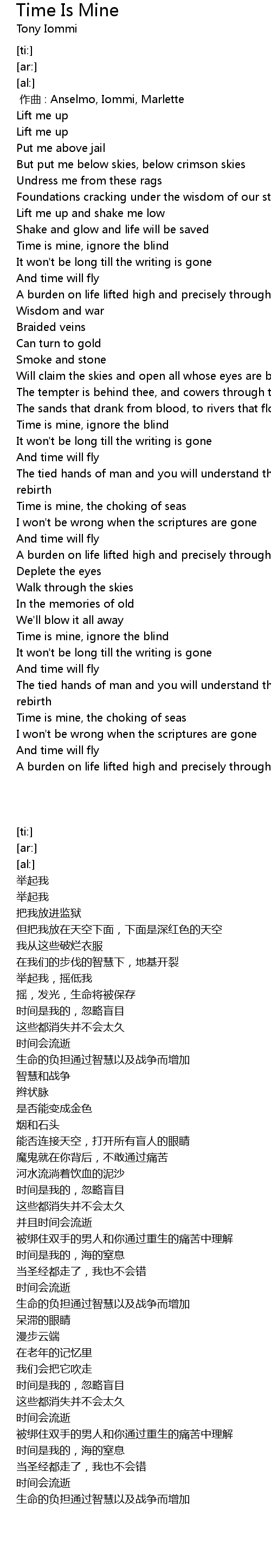 | [00:00.00] | 作曲 : Anselmo, Iommi, Marlette |