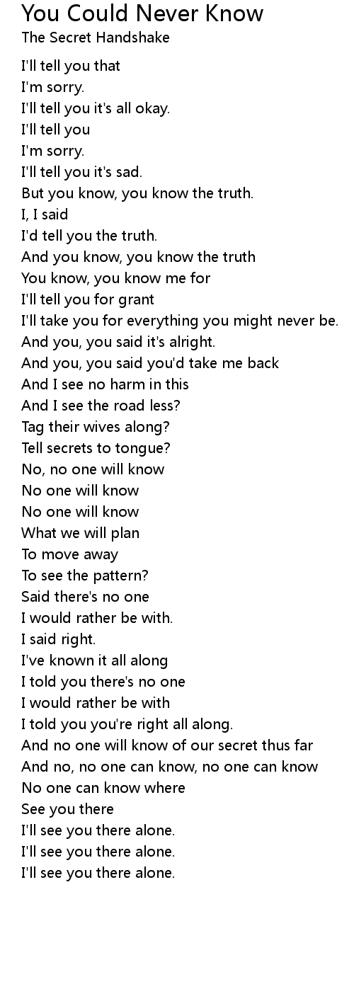 And no, no one can know, no one can know |