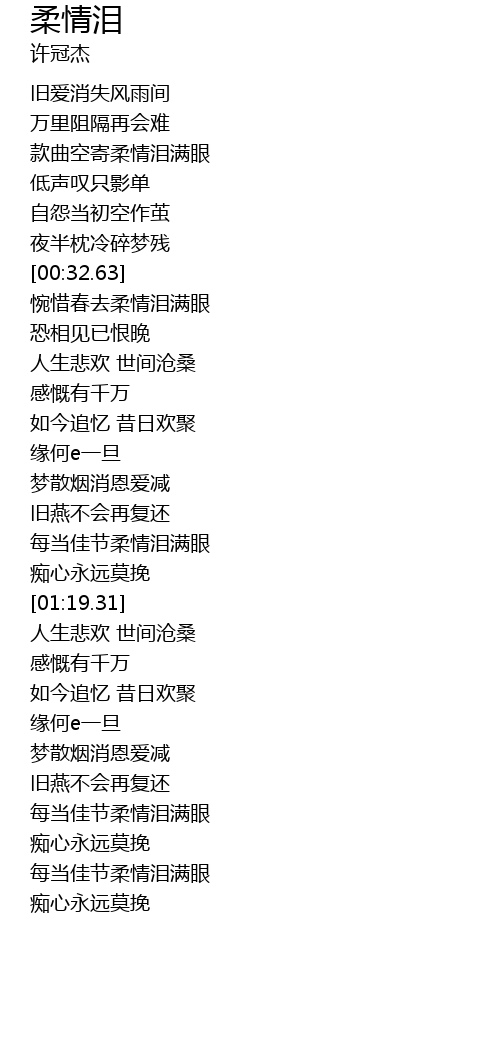 | [00:17.58] | 款曲空寄柔情泪满眼 |