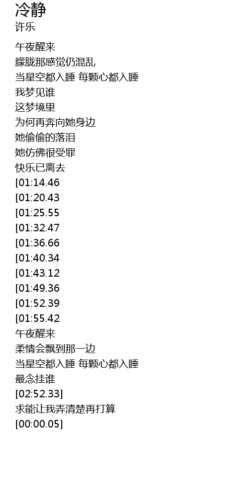 | [03:38.14][01:55.42] | 祈求在冷静中找到打算 |