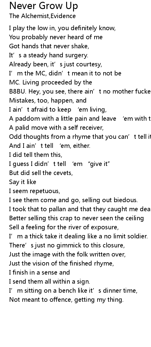 | Song | Never Grow Up |