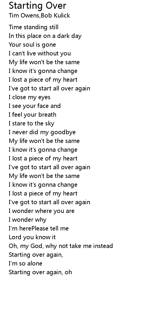Starting over again, |