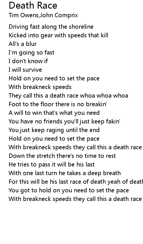 They call this a death race whoa whoa whoa |