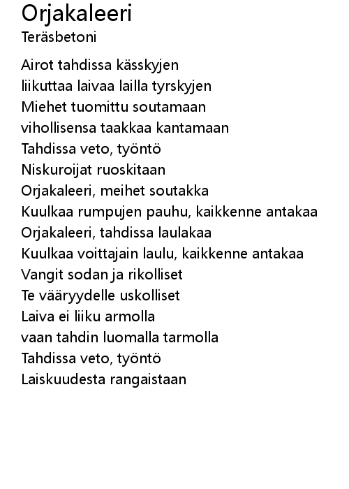 | Kuulkaa voittajain laulu, kaikkenne antakaa | |