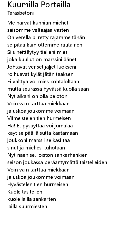 | Song | Kuumilla Porteilla |