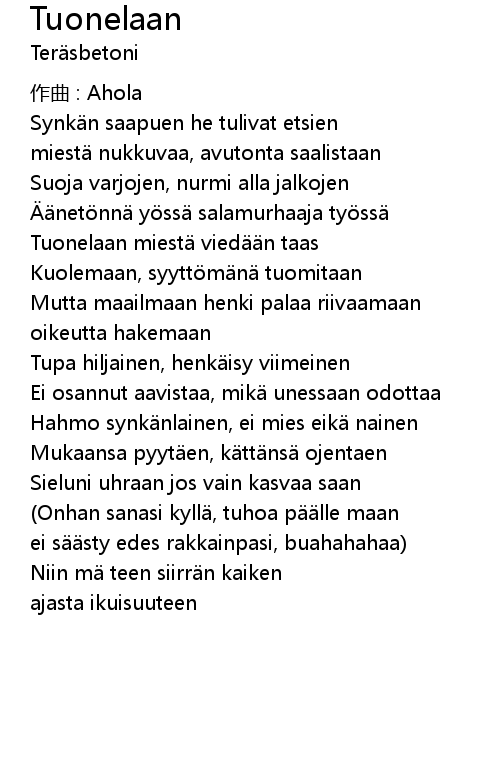 | Song | Tuonelaan |