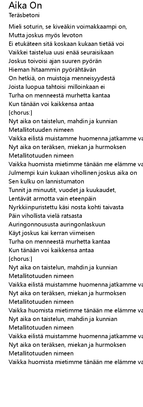 | Nyt aika on ter ksen, miekan ja hurmoksen | |