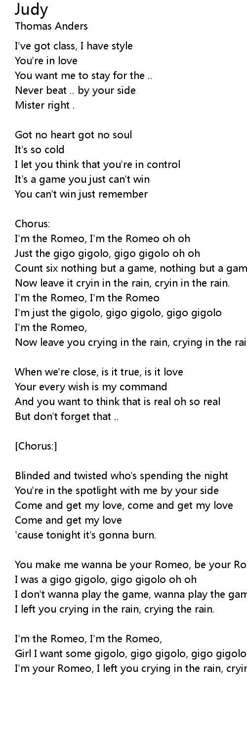 I'm your Romeo, I left you crying in the rain, crying in the rain. |