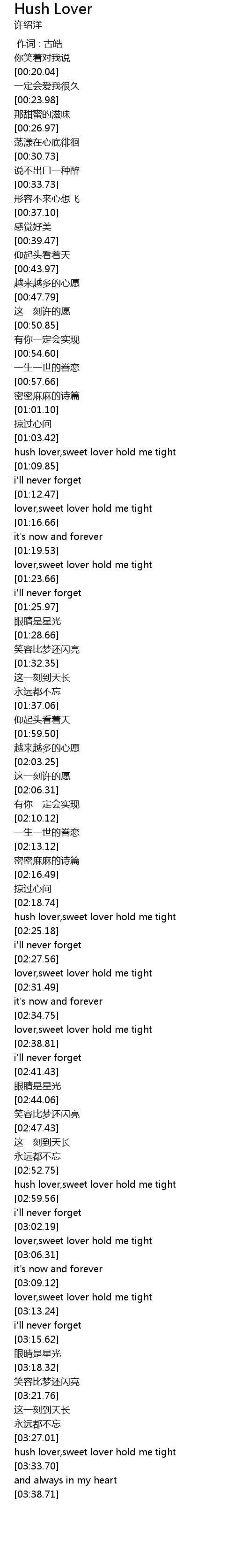 | [03:29.57] | hush lover,sweet lover hold me tight |