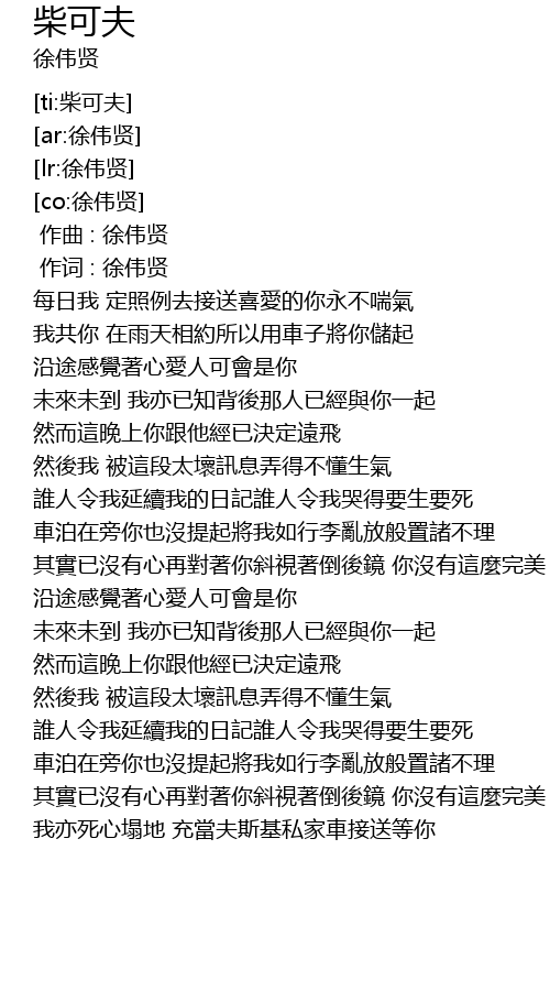 | [00:00.00] | 作曲 : 徐伟贤 |