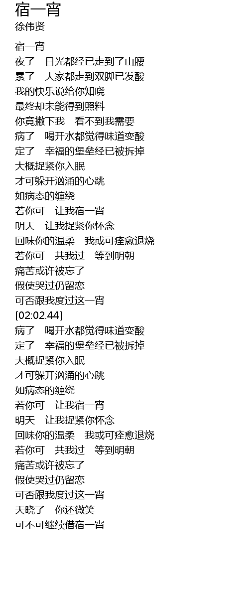 | [02:48.70] | 若你可 让我宿一宵 |