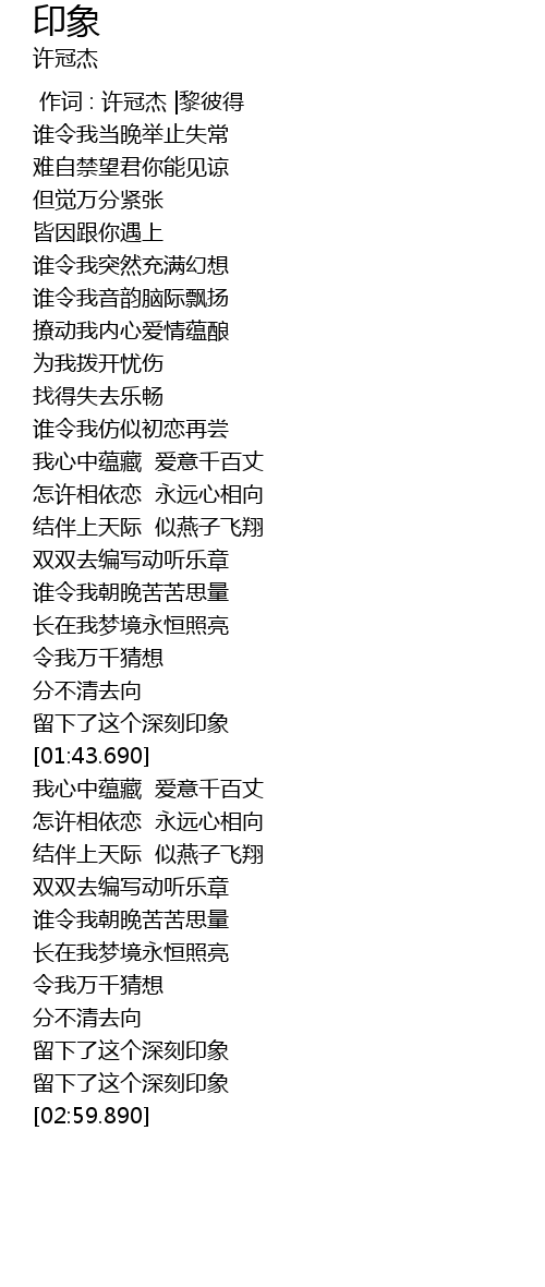 | [00:00.00] | 作词 : 许冠杰 |黎彼得 |