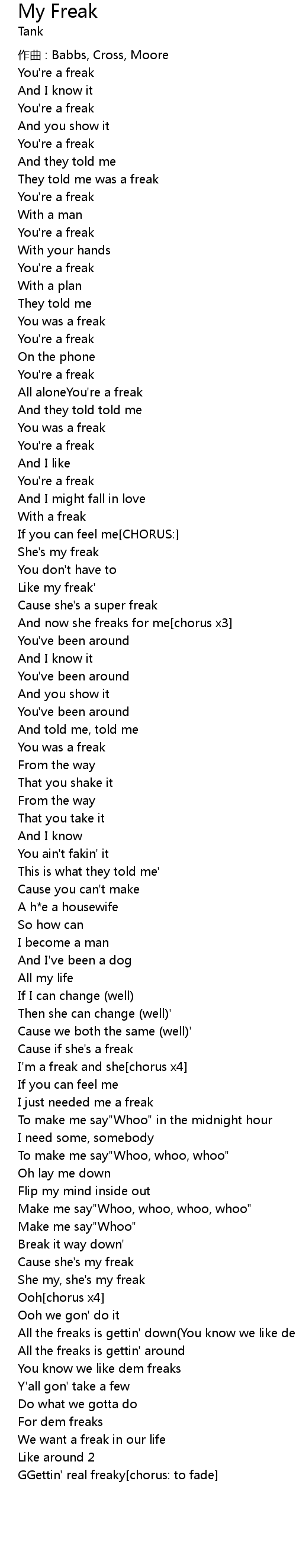 | I' m a freak and she chorus x4 | |