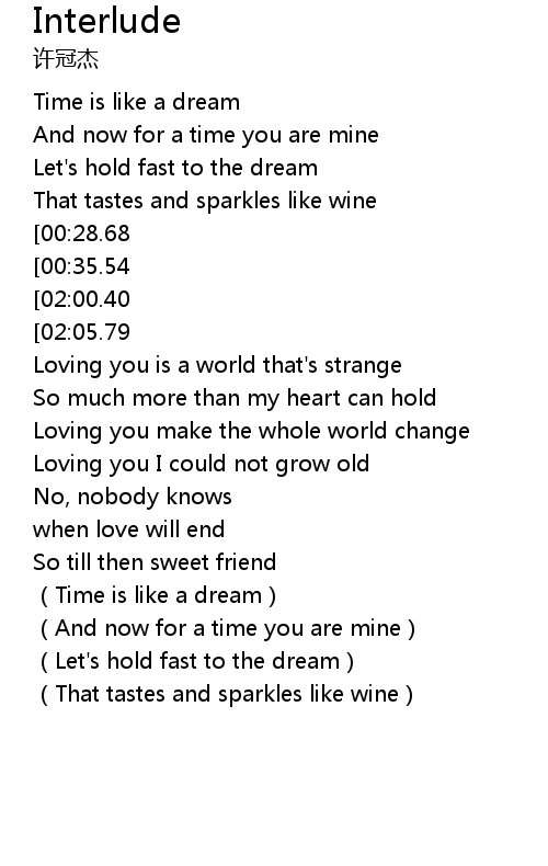 | [02:11.59][02:00.40][00:40.10] | What seem like an interlude now |