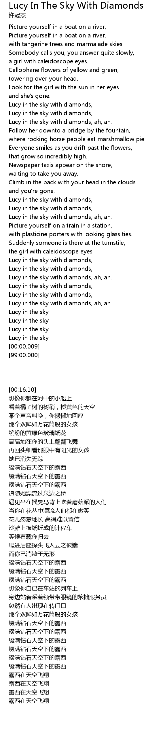 | [03:21.90] | Lucy in the sky with diamonds, ah, ah. |