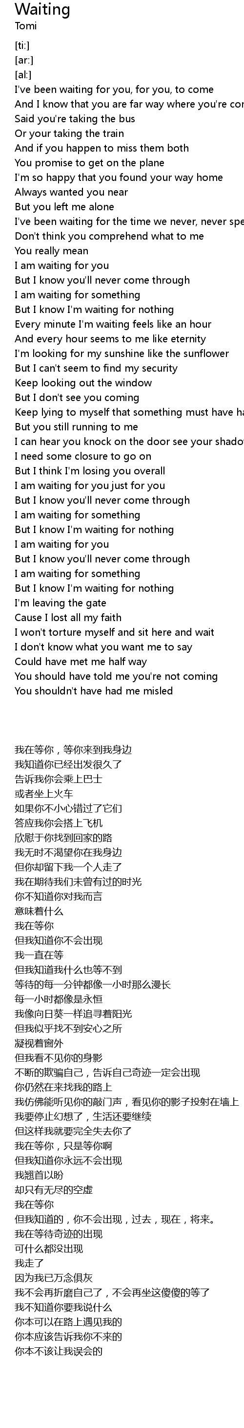 | [01:48.51] | Every minute I'm waiting feels like an hour |