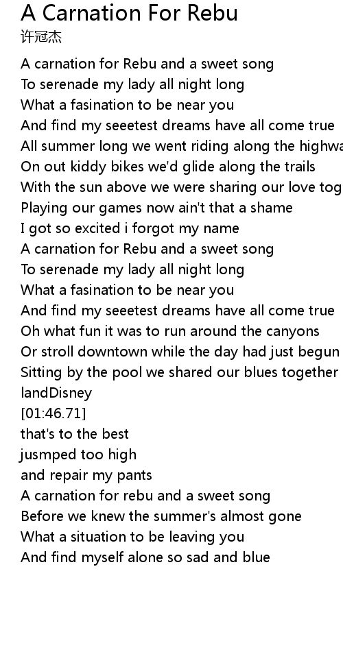 A carnation for rebu and a sweet song |
