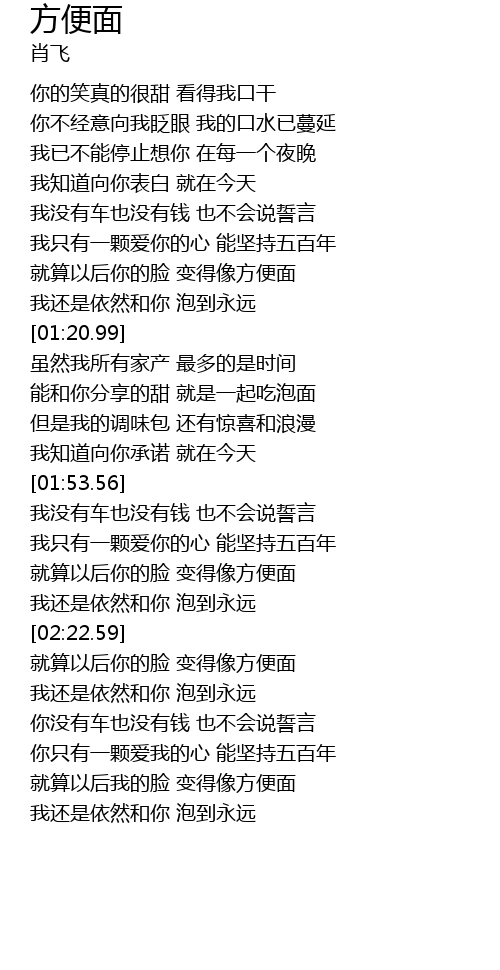 | [02:35.79] | 就算以后你的脸 变得像方便面 |